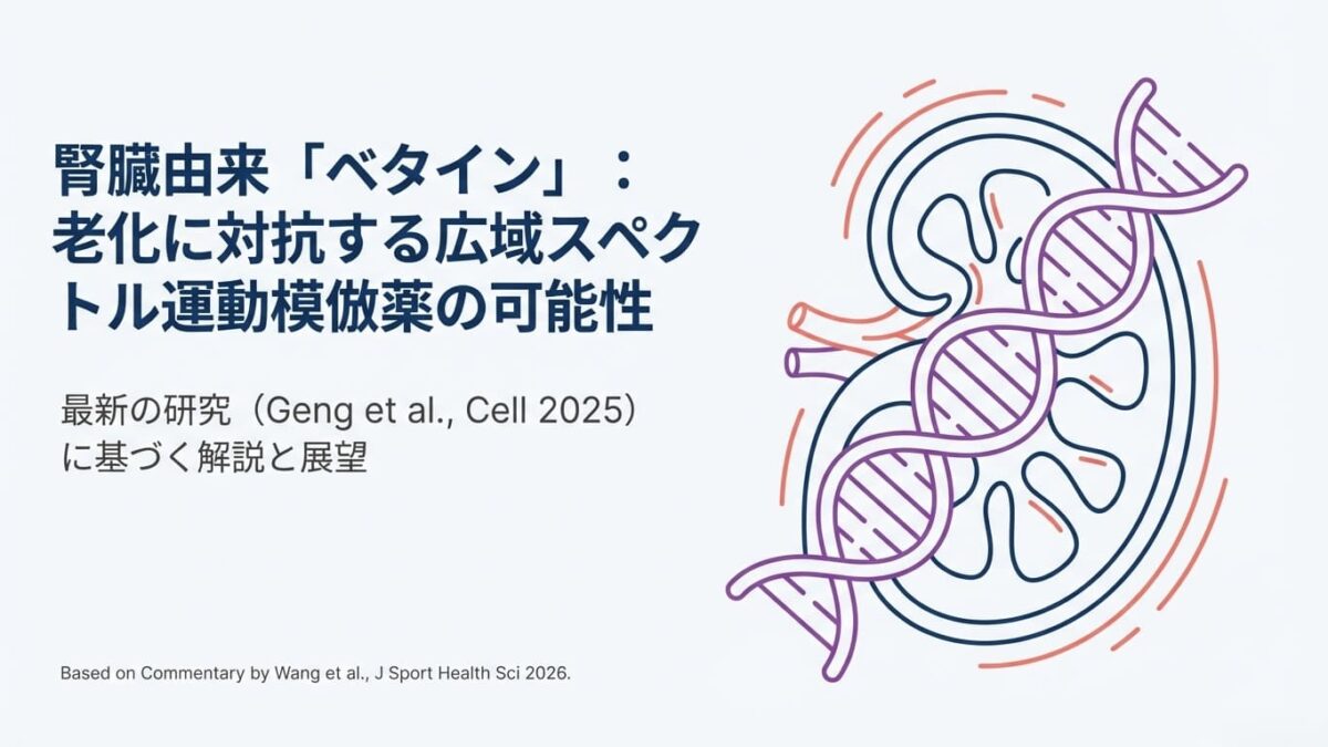 - 結論: 腎臓で合成されるベタインは、運動の効果を模倣し、健康的な老化を促進する有望な候補物質であることが示唆された。