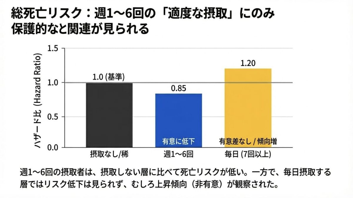 結果:週1~6回摂取が「スイートスポット」となる